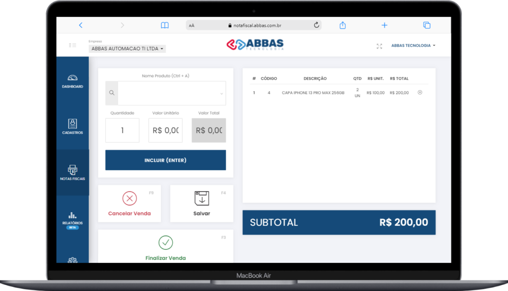 Com o ABBAS você pode emitir notas na palma da sua mão! Usando apenas o seu celular.